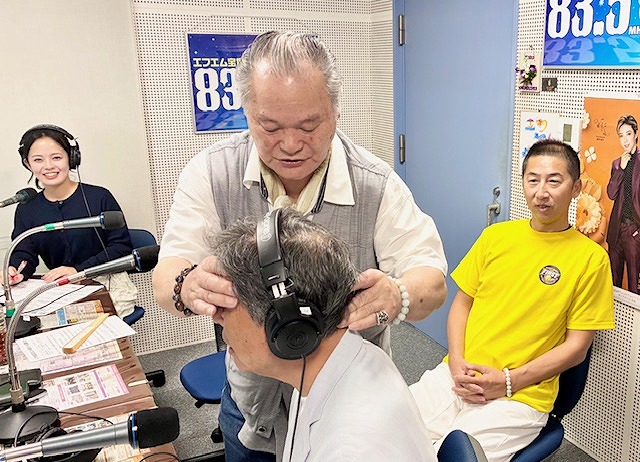 太田元治、氣流さんに施術をされております💪🏼(生放送中です笑)