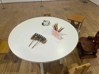 会場内に設置されているテーブルは、元永さんの作品から構想を得て特別に制作されたものだそうです!