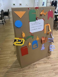 会場内には、ハサミ、テープ、スタンプやカラーペン、毛糸や布など色々なものが用意されているので好きなものを使って
