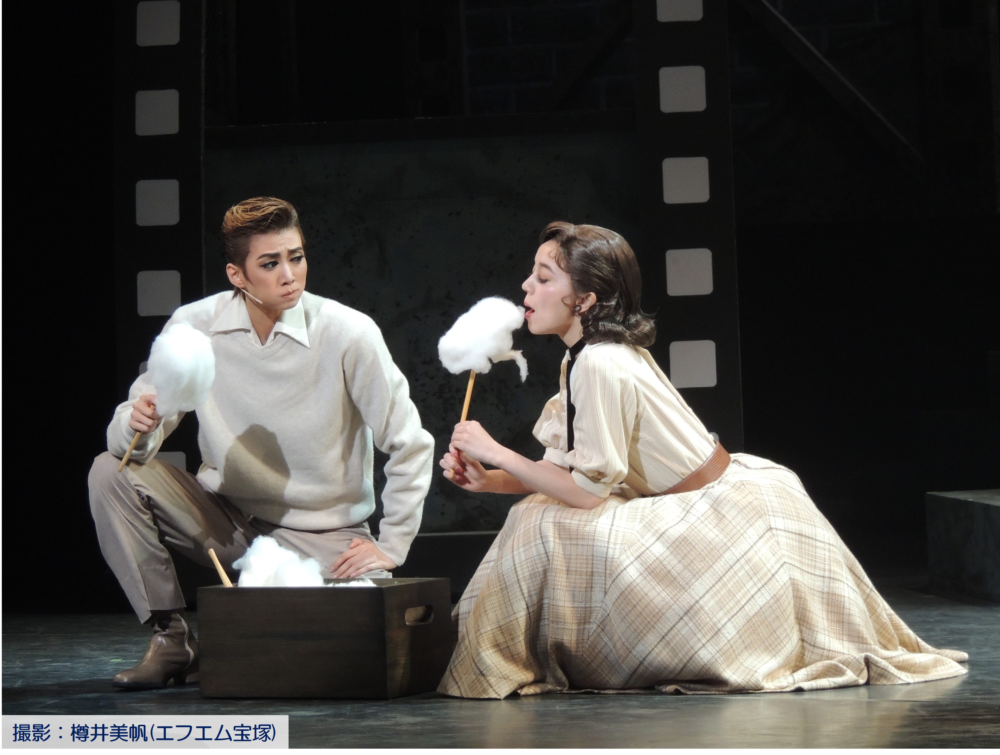 映画スタジオのセットでの遊園地ごっこでは、子どもみたいに楽しそうな二人。