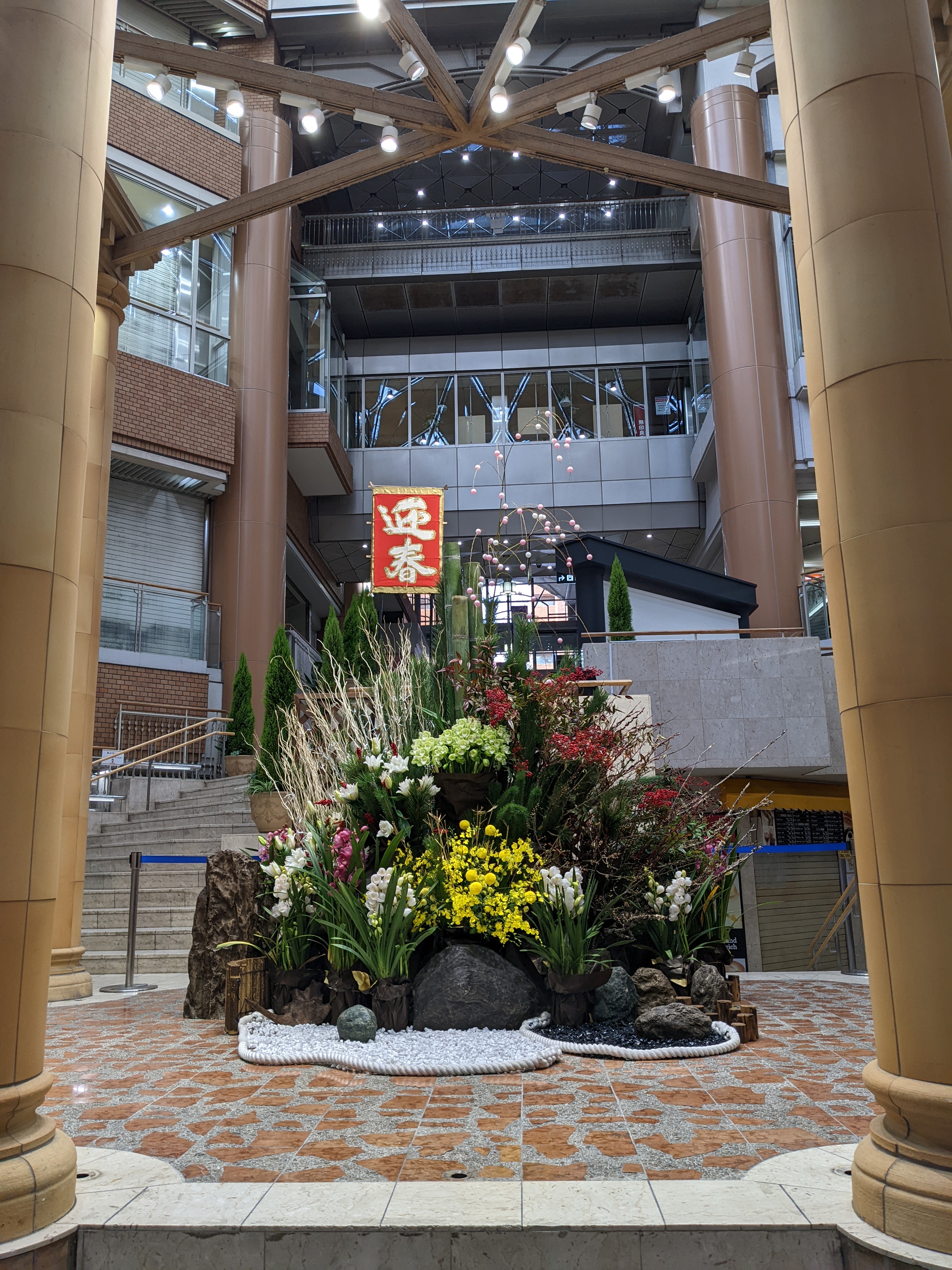 宝塚駅直結のソリオ宝塚には、とても立派なお正月のお花が。
