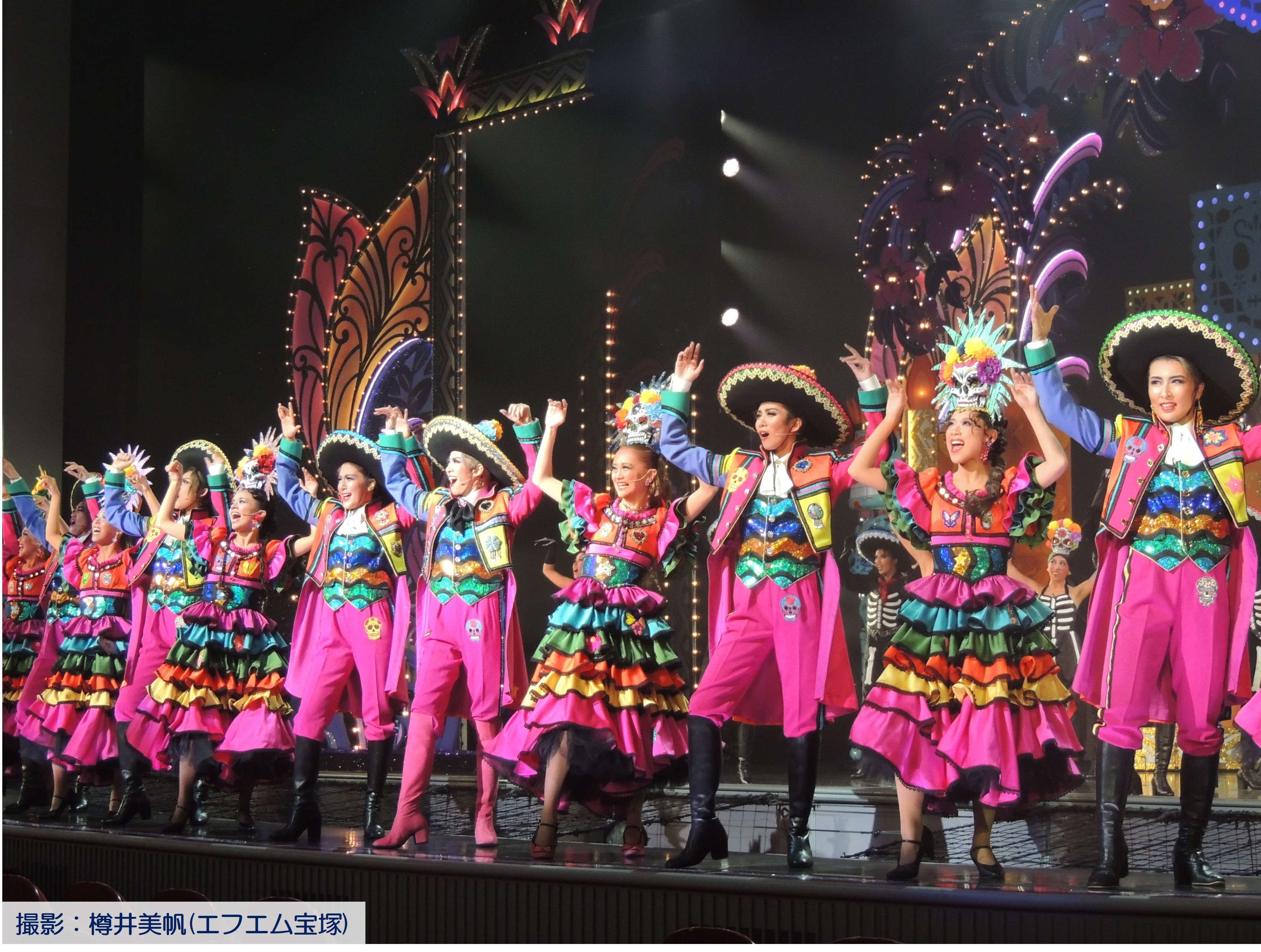 娘役さんの太陽とお花とガイコツが一体化したかのような被り物も楽しいです。
