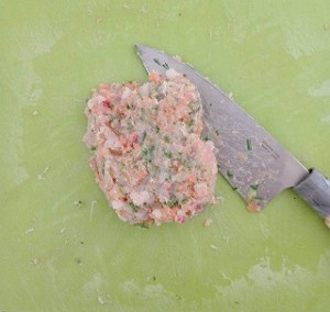 ①大葉・ネギをみじん切りにします。しょうがはすり下ろします。