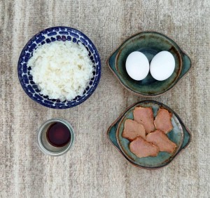 ・卵 2個 ・白いご飯 適量 ・焼豚(市販のもの) お好みの量で。
