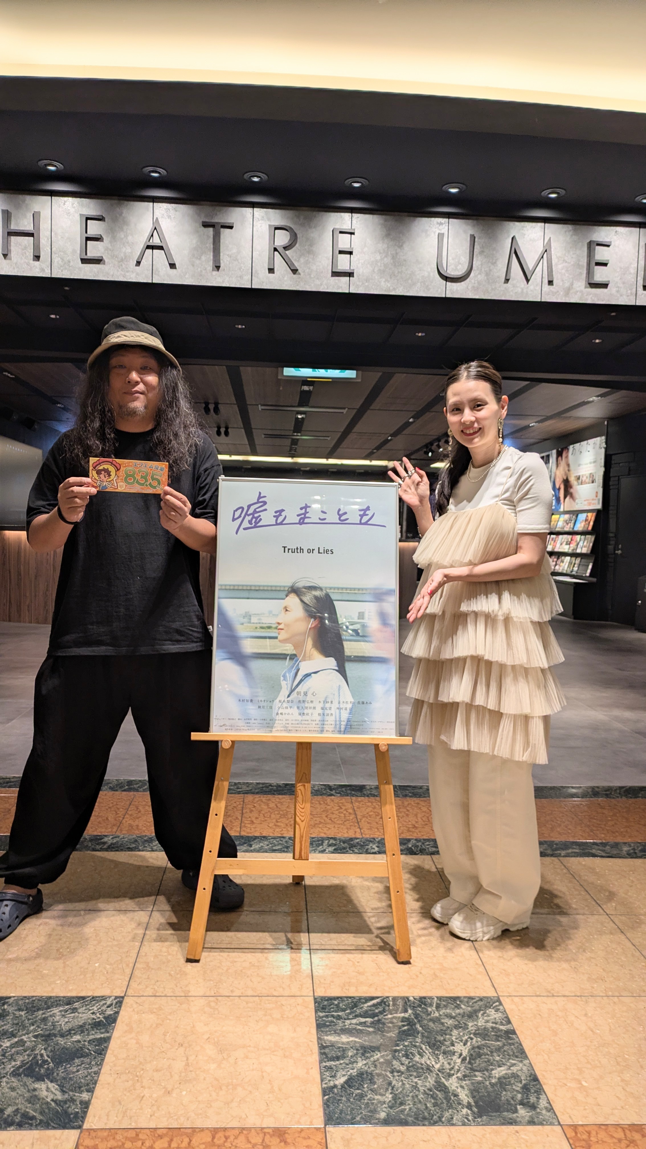 映画『嘘もまことも』磯部鉄平監督 朝見心さん 監督ハミングステッカーを(^^)